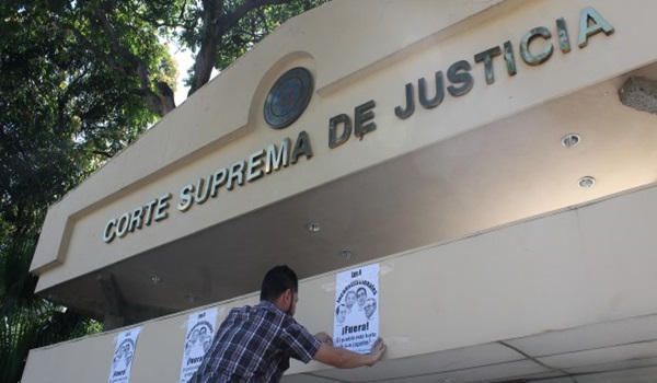“Fuera los magistrados, el pueblo está harto de sus jugadas”, con estas, palabras, representantes de organizaciones, sindicatos y movimientos sociales y populares exigieron, esta mañana, la destitución de los cuatro magistrados de la Sala de Lo Constitucional de la Corte Suprema de Justicia (CSJ), quienes responden a intereses de poderes oligárquicos y no a las grandes mayorías del país.