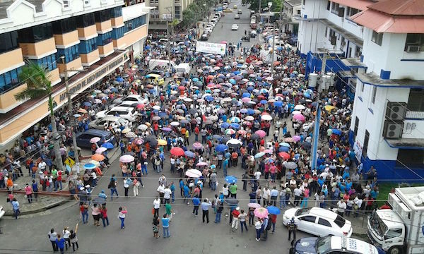 «Varela dame mi aumento y que sean 600», coreaban los educadores, quienes después de la asamblea marcharon hacia la Asamblea Nacional. Allí realizaron un piquete y entregaron el pliego de peticiones.