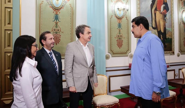 El ex presidente del gobierno de España, José Luis Rodríguez Zapatero se reunió con el presidente de la república Nicolás Maduro en el palacio de Miraflores, uno de los intermediarios del diálogo entre el Estado y la oposición venezolana.