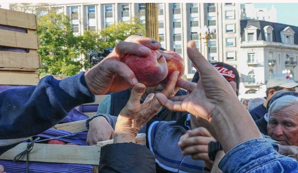 Argentina: productores regalaron fruta en la Plaza de Mayo para visibilizar la crisis