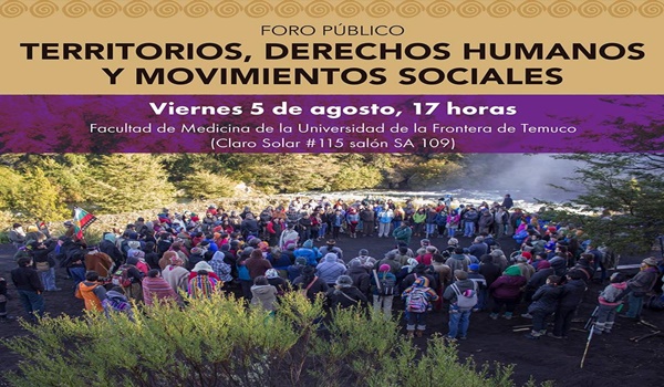 Una jornada interregional macro zona centro sur denominada: “territorios, derechos humanos y movimientos sociales”, se realizará en Temuco, la que contempla un foro abierto el día viernes a las 17 horas, en la Facultad de Medicina de la Universidad de la Frontera de Temuco.