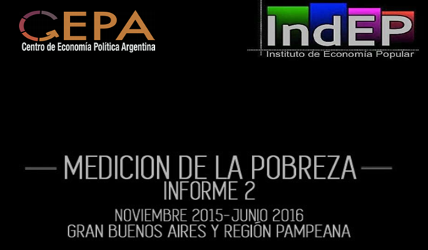 Informe del Centro de Economía Política Argentina que releva la pobreza en el Gran Buenos Aires y la región pampeana y en el que se establece que la pobreza en los meses de mayo y junio trepó al 33,91% mientras en noviembre último alcanzaba el 19, 82