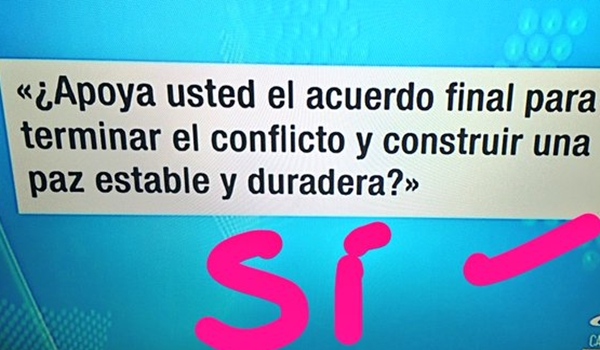 «Es una pregunta que no da lugar a ninguna confusión. La Corte nos dijo que tuviera esas características (…) La pregunta que se le hace al pueblo es si aprueba o no el acuerdo final, no es una pregunta retórica sobre si los colombianos quieren o no la paz sino sobre si apoyan o no el acuerdo final”, explicó Santos.