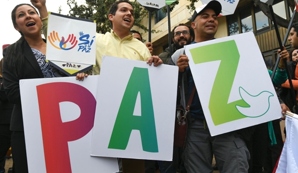 Con la firma del presidente Juan Manuel Santos por el gobierno y del comandante Rodrigo Londoño («Timochenko») por las Fuerzas Armadas Revolucionarias de Colombia (FARC-EP), se puso fin el 26 de setiembre de 2016 al conflicto armado interno más antiguo de América latina que causó más de 220.000 muertos y al menos cinco millones de refugiados y desplazados.
