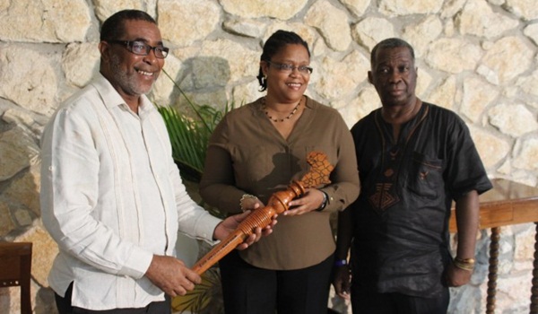 The Baton was handed over by Dr. Hillary Browne, Programme Manager, Culture, CARICOM Secretariat, to Ambassador Anthony Liverpool of the Antigua/Barbuda Ministry of Foreign Affairs on the margins of the just ended Regional Services Sector symposium. Ambassador Liverpool represented Mr. Dorbrene O’Marde, Chairman of the Antigua and Barbuda Reparations Support Commission.