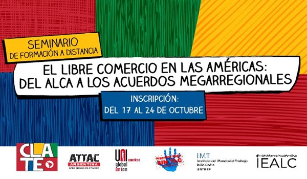 Desde el día de ayer y hasta el 24 de octubre se encuentra abierta la inscripción para participar del Seminario de Formación a Distancia: “El libre comercio en las Américas, del ALCA a los Acuerdos Megarregionales”.