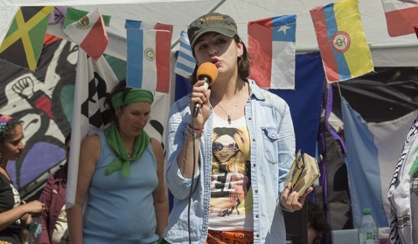 Paola Salgado Piedrahita es abogada y activista por el derecho al aborto. Feminista y defensora de los derechos humanos. Joven y luchadora. En Rosario, en medio de la Plaza San Martín, punto principal del Encuentro Nacional de Mujeres (ENM), habla con una y otra persona, se pasea entre los puestos de la feria y llega a la radio feminista montada bajo un gazebo y una montaña de cables. Enfrenta el sol tajante con una visera y unos lentes, y toma el micrófono con fuerza para hablarle a las mujeres argentinas mientras, en algún recuerdo no tan lejano, imagina estar frente a sus colegas colombianas. El exilio es nostálgico. Paola aterrizó en Argentina en octubre de 2015, veinte días después de haber salido de la cárcel El Buen Pastor, en Bogotá, donde permaneció detenida, acusada de “terrorista” por su militancia en el Congreso de los Pueblos y su tarea como coordinadora de un programa de salud reproductiva. “Caí en una causa armada por parte de la policía y la fiscalía. Me vincularon a un proceso judicial por terrorismo. Hubo una judicialización no sólo policial, sino también mediática”, reconstruye.