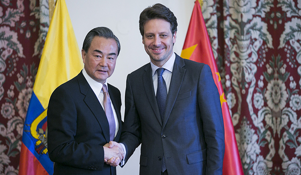 De su parte, el Canciller Wang Yi ratificó la ampliación y profundización de la cooperación china, sobre todo en lo relativo a la diversificación de la economía ecuatoriana: “China va a ofrecer su ayuda para, a través de acciones reales, fortalecer la capacidad de desarrollo independiente del Ecuador”.