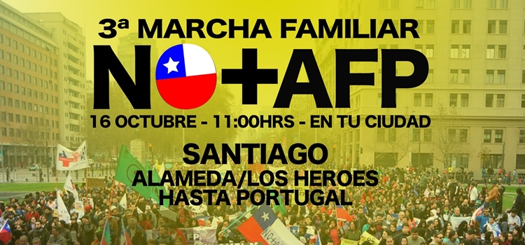 Tal como en las dos marchas anteriores, este domingo la Coordinadora No+AFP espera que sean cientos de miles las personas que salgan a marchar exigiendo el término de las AFP y la instalación de un sistema público y solidario de pensiones.