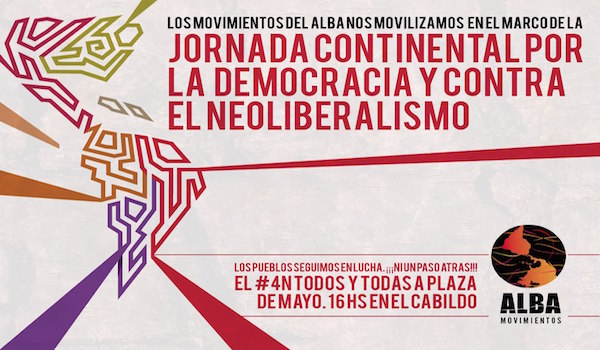 Desde ALBA Movimientos nos sumamos a esta iniciativa compartida con otras articulaciones de carácter continental, como la Central Sindical de las Américas (CSA), CLOC/Vía Campesina, Jubileo Sur, Amigos de la Tierra, entre otras.