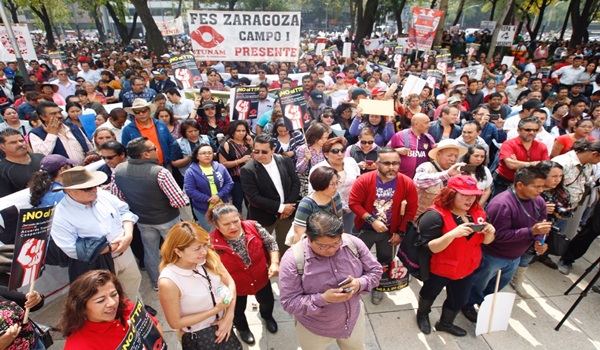 El contingente de alrededor 4 mil personas según cifras oficiales, se unieron para exigir que los senadores no aprueben el acuerdo de lo contrario afectarían los derechos humanos y laborales de los mexicanos y los recursos naturales del país, pero sobre todo, afirmaron, incrementaría el número de pobres, principalmente en la población que habita el campo.