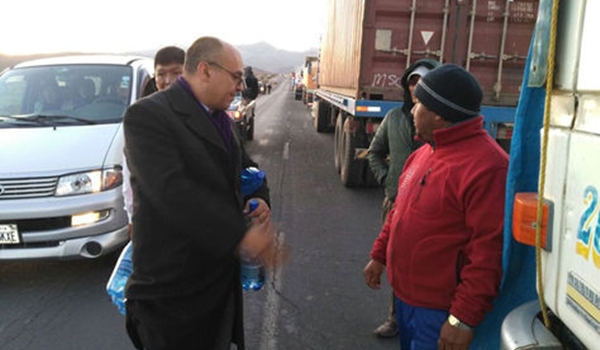 “Imagínense cuál será la situación nuestra que por día son 400 o 500 camiones y han estado haciendo fila en Chungará unos 1500 camiones”, dijo el diplomático boliviano destinado en Arica.
