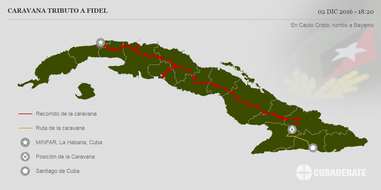Se espera que la Caravana de la Libertad llegue al mediodía de este sábado y tras un breve alto en la Plaza de la Revolución, recorrerá las principales arterias de Santiago de Cuba y hará altos en el balcón desde donde hablara el líder de la Revolución el primero de enero de 1959, en la Plaza de Martes y en la posta tres del Cuartel Moncada.