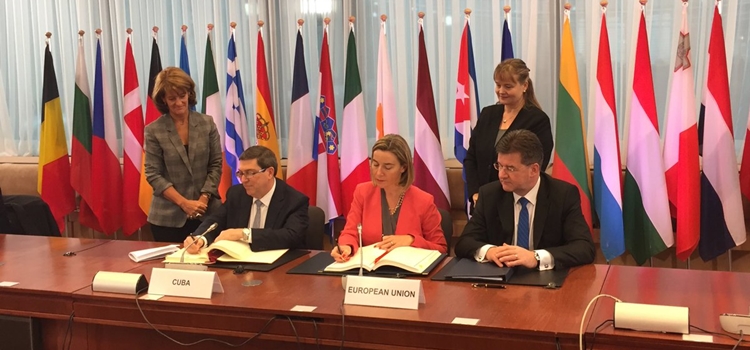 El documento fue suscrito por el ministro de Relaciones Exteriores de Cuba, Bruno Rodríguez, y la alta representante de Política Exterior de la UE, Federica Mogherini, así como por representantes de los países que integran el bloque comunitario.