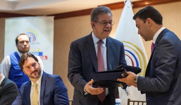 El presidente del Consejo Nacional Electoral de Ecuador (CNE), Juan Pablo Pozo, y el Jefe de la Misión de Observación de la Organización de Estados Americanos (OEA), el expresidente dominicano Leonel Fernández, firmaron este lunes en Quito un acuerdo que establece los procedimientos para el acompañamiento electoral en este país durante los comicios del 19 de febrero.