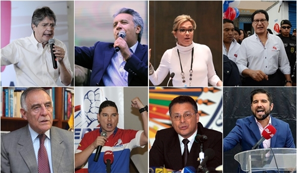 Iván Espinel (Fuerza Compromiso Social), Patricio Zuquilanda (Sociedad Patriótica), Washington Pesántez (Unión Ecuatoriana), Abdalá Bucaram (Fuerza Ecuador), Cynthia Viteri (Partido Social Cristiano), Paco Moncayo (Izquierda Democrática), Guillermo Lasso (Movimiento CREO), y Lenín Moreno (Alianza País), son los aspirantes a suceder al presidente Rafael Correa.