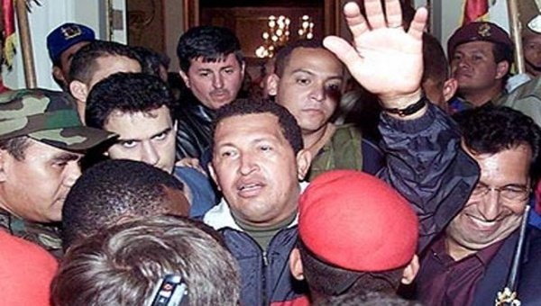 Fue en la madrugada del 13 cuando Chávez fue llevado en helicóptero a Miraflores. Él aún temía ser ejecutado: pero no, ahí estaba su pueblo para recibirlo, junto a algunos de sus ministros y colaboradores (los que no seguían escondidos). La revolución no sería transmitida. Los enviados especiales de las grandes cadenas llegaban para entrevistar a Carmona “El breve”, pero terminaron por registrar la huida de los golpistas y el regreso de Chávez.