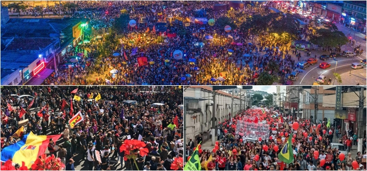No centro de metrópoles como como São Paulo, Rio de Janeiro, Recife e Belo Horizonte, a manhã parecia de domingo, com o comércio fechado e pouca gente na rua. Aglomeração mesmo se viu foram nas manifestações. Em Belo Horizonte, mais de 50 mil pessoas ocuparam as principais avenidas. Em Goiânia, outra multidão ocupou o Centro. Em Curitiba, 20 mil pessoas foram à porta de Federação das Indústrias do estado fazer a devolução simbólica do pato de borracha das manifestações golpistas. Em São Paulo e no Rio, enormes atos fecham este dia histórico. Em São Paulo, 70 mil pessoas se reuniram em um protesto que chegou até a casa do presidente golpista Michel Temer (PMDB). No Rio, o ato contou com ao menos 40 mil pessoas.