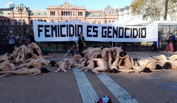 Una impactante manifestación de mujeres tuvo lugar este martes, frente a la Casa Rosada, el palacio de Tribunales y el Congreso de la Nación bajo la consigna “Femicidio es Genocidio”.