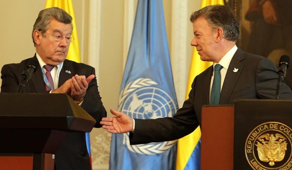 Sin embargo, Estados Unidos envió a Michele Sison, y Rusia a Evgeny Zagaynov, en sus lugares. A la reunión con Santos también acudió el jefe de la misión de la ONU en Colombia, Jean Arnult, y el coordinador residente y humanitario del Sistema de Naciones Unidas y representante del PNUD en Colombia, Martín Santiago.
