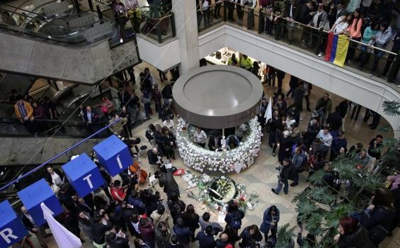 En medio del frío y la lluvia, centenares de personas rindieron homenaje en el centro comercial Andino a las tres víctimas fatales que dejó el acto terrorista ocurrido allí en la tarde del sábado. Con este acontecimiento, los vecinos, comerciantes y altos funcionarios del Estado, como el presidente Juan Manuel Santos, quisieron demostrar que en Bogotá “no nos vamos a dejar vencer”.
