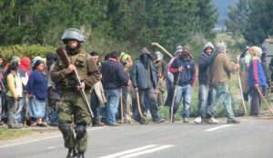 Es una militarización desplegada con el fin de resguardar el saqueo territorial liderado hoy por las megaempresas forestales e hidroeléctricas. Son muchos los ejemplos de violencia cometidos en contra de nuestra gente en comunidades de Arauco, Malleco, Cautín, Valdivia (Lanco), Osorno. Incluidos, como se sabe, el asesinato de varios comuneros. “En la Araucanía hay una sensación de impunidad”, dicen los dueños de Chile y piden paz -pistola al cinto- y un “estado de excepción” que siempre han tenido. El ministro del interior del actual gobierno, Jorge Burgos, ha venido –seguramente- a consolidar tal situación de facto y, además, refiriéndose a las demandas de nuestro pueblo ha declarado que “No hay espacio para un Estado dentro de un Estado”.