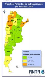 La ley de Tierras, sancionada a fines de 2011 por el Congreso, creó un Registro Nacional de Tierras donde los extranjeros que pretendieran comprar tierras o inmuebles rurales debían ser habilitados por el registro.