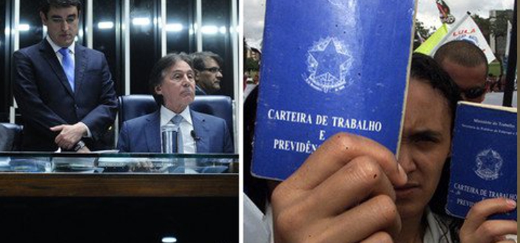 Depois de muitas horas de protesto e resistência de senadoras da oposição, que ocuparam a mesa da presidência do Senado para impedir a votação da reforma trabalhista de Michel Temer, os senadores aprovaram o texto-base da proposta, que restringe direitos históricos dos trabalhadores, por 50 votos a 26; entre as medidas de maior destaques estão o acordado entre empregados e empresários sobre o legislado, o que deixa em segundo plano os direitos previstos na legislação; ex-líder do PMDB, agora integrante da oposição, o senador Renan Calheiros discursou: «estamos vivendo o pior momento deste Senado Federal»; direitos dos trabalhadores foram retirados por um governo ilegítimo que deu um golpe.