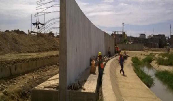 El objetivo del muro que se llevaba adelante en la margen derecha del Canal de Zarumilla tenía como fin evitar inundaciones y dar soporte a la plataforma de relleno destinada a nivelar el terreno donde irá el Parque Lineal Huaquillas.
