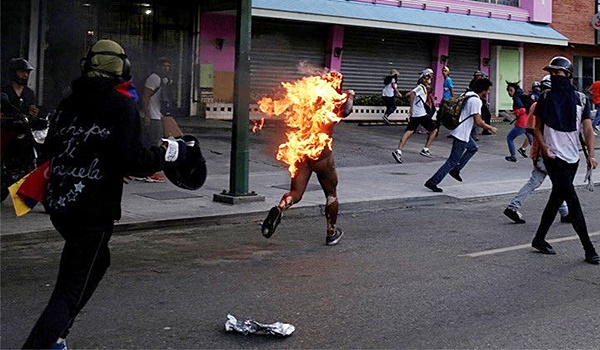 2.- Un grupo de encapuchados quemó y apuñaló el 26 de junio a Giovanny González, de 24 años, por parecer chavista, en el sector La Castellana, municipio Chacao del estado Miranda. En esta zona frecuentemente facciones violentas alentadas por sectores de oposición realizan acciones de calle.