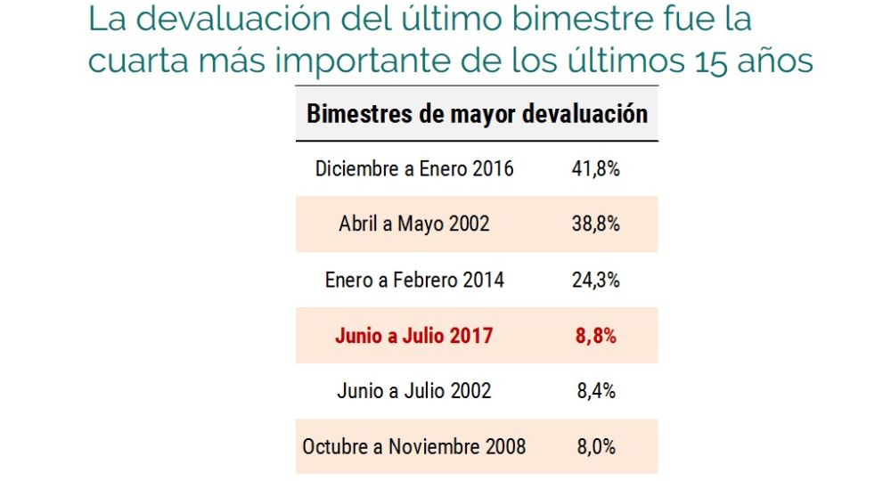 Desde el Observatorio de Políticas Públicas de la UNDAV adujeron estos resultados a que entre junio y julio se observó «la cuarta mayor devaluación de los últimos quince años» provocando un aumento del dólar cercano al 9%. En ese contexto, desde el centro de estudios aseguraron que «lejos de mantenerse contenidas dentro de los carriles de lo monetario», la persistencia del «esquema de endeudamiento (interno y externo) a tasas altas tiene repercusiones sobre los agregados reales».