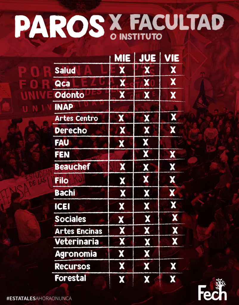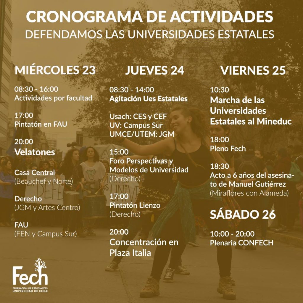 Cronograma de actividades de movilización de la Fech de toda la semana