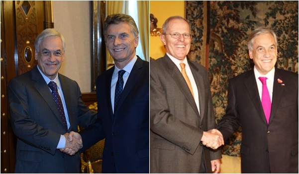 “Queremos avanzar en una agenda que tiene que ver con la integración regional, pero sobre todo en cómo mejoramos la seguridad de nuestras fronteras, cómo lograr controlar mejor el narcotráfico, el crimen organizado, la inmigración ilegal, que es una preocupación muy central para el Presidente Macri, para el Presidente Kuczynski y también para nuestro futuro gobierno”, informó Piñera al contar de su viaje, el que comenzará el miércoles en la capital trasandina.