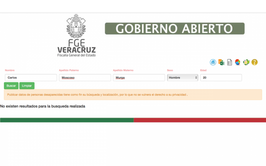 Si bien, a la fecha el sitio web está en uso, únicamente aparecen 2433 fichas de personas no localizadas, que pertenecen al periodo de Javier Duarte de Ochoa (2010 – 2016), la información de 18 casos que a continuación se presentan, la mayoría con denuncia, no ha sido informada por el organismo de justicia.