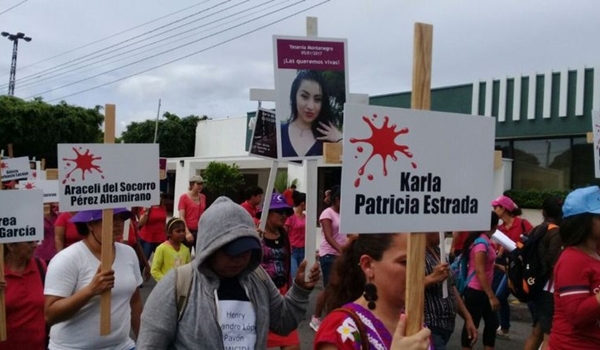Este caso es notorio entre la caminata, ya que varias mujeres con carteles en mano piden justicia para Karla Estrada Rostrán, cuyo presunto asesino no ha sido capturado por la Policía Nacional.