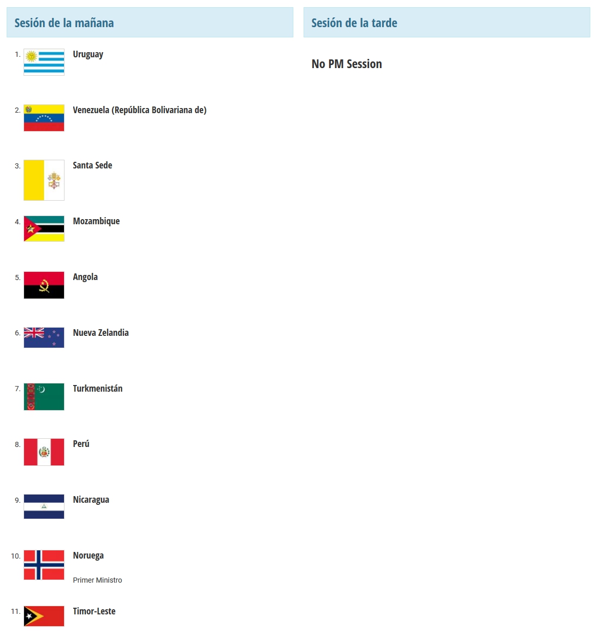 Además de las cuatro naciones latinoamericanas, en el último día del debate de la Asamblea General intervendrán altos funcionarios de la Santa Sede, Mozambique, Angola, Nueva Zelanda, Turkmenistán, Noruega y Timor Leste.