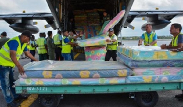 El traslado de la ayuda humanitaria lo dispuesto el jefe de Estado, Lenín Moreno, y se ejecutó con la colaboración de la Cancillería, el Ministerio de Defensa, la Secretaría de Gestión de Riesgos y las Fuerzas Armadas.