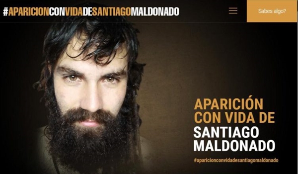 Santiago Maldonado fue visto por última vez en el marco del operativo del 1°de agosto de la Gendarmería Nacional, destinado al desalojo de una protesta de la comunidad mapuche contra la detención de su dirigente Facundo Jones Huala. Según testigos del hecho, el joven de 28 años fue golpeado y capturado por entre uno y tres uniformados.