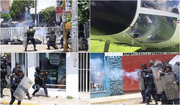 También elementos de la Policía Federal y Gendarmería han comenzado a reprimir a los maestros que se encontraban a las afueras del Centro de Convenciones de Oaxaca en Avenida Lázaro Cárdenas.