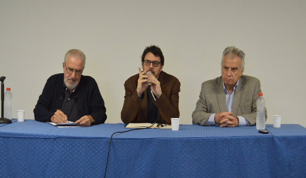 Una colmada aula “Raúl Giandana” de la Sede Piñeyro de la Universidad Nacional de Avellaneda (UNDAV) recibió en la tarde del jueves 7 de septiembre al historiador Felipe Pigna, el politólogo Atilio Boron y el constitucionalista Jorge Cholvis, quienes fueron convocados por el Departamento de Humanidades y Artes en el marco de la Cátedra Libre Osvaldo Bayer. Se trató del primer encuentro del ciclo “Las políticas macristas: ¿Una vuelta a los ’90 o a los ’30?”, cuestión que fue ampliamente tratada por los especialistas.