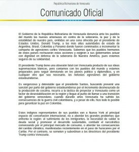 Además denunció que el Gobierno de EEUU y sus aliados en Latinoamérica, Europa y otras naciones del mundo, lo que pretenden es asfixiar y ahogar al pueblo venezolano con las medidas económicas impuestas por la Casa Blanca para así forzar un cambio de régimen. «Quieren que el pueblo sufra, quieren crear e imponer una crisis humanitaria en nuestro país».