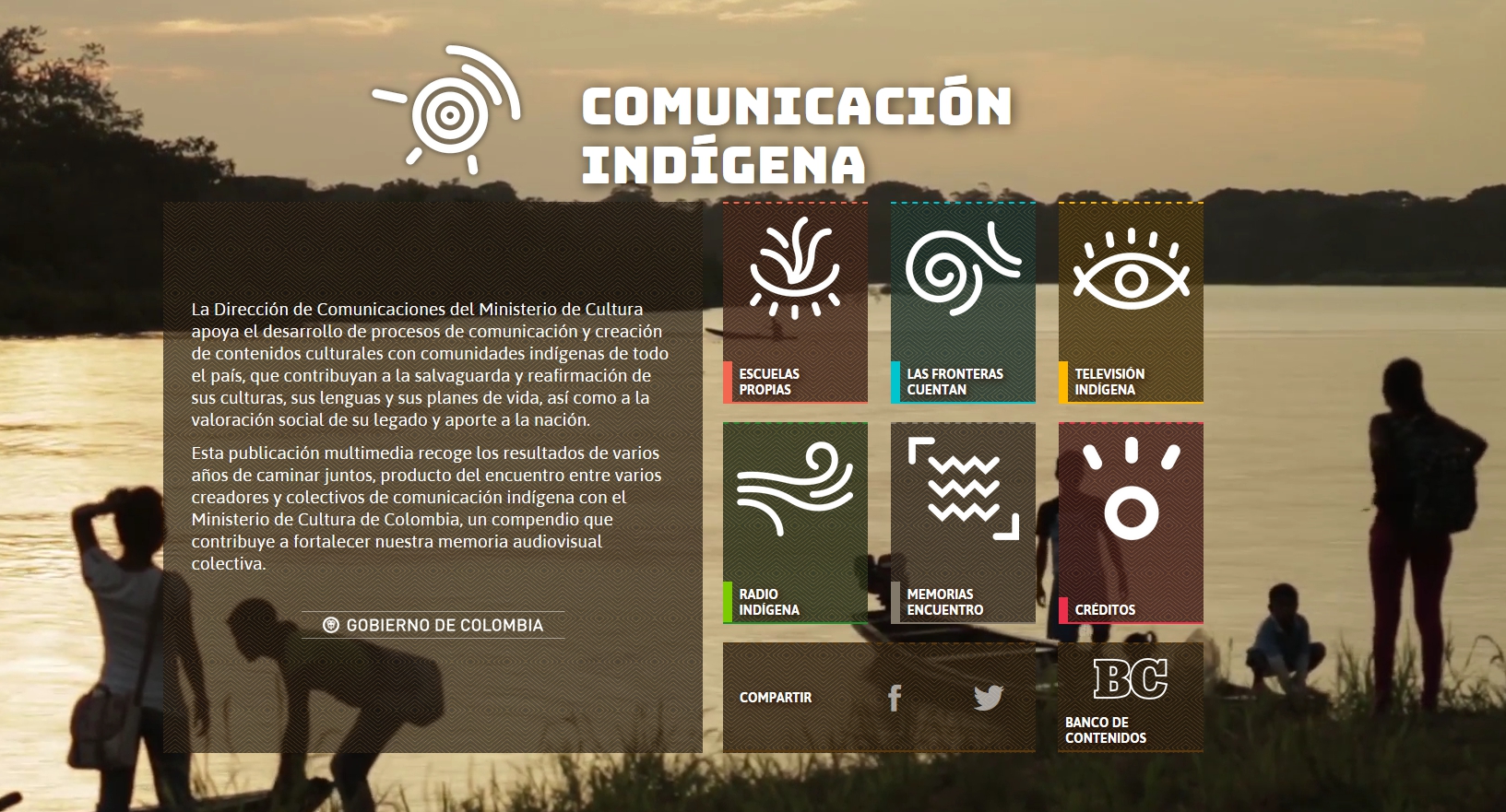 La publicación, denominada «Multimedia Comunicación Indígena» y alojada en la web del Ministerio de Cultura, incluye relatos que han hecho de Colombia pueblos como los Awá, Cofá, Emberá Chamí, Camëntsá biya, Nasa, Quillasinga, Mocaná, Kankuamo, Huitoto, Wayú, Eyábida, Dóbida, Yanakona y Senú.
