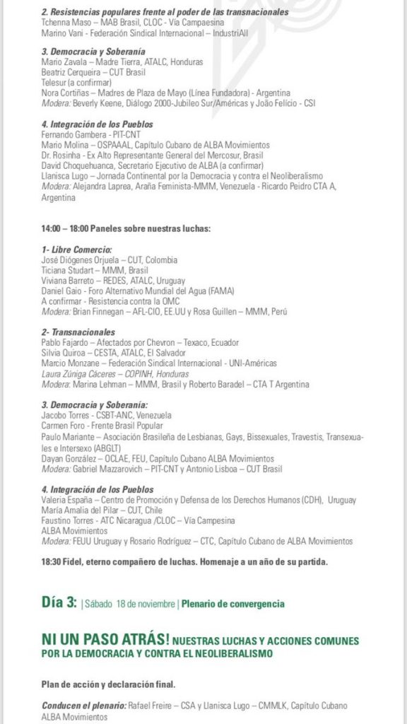 Si esto es así, afirmó, hay que operar en consecuencia y este evento previo, a parte de la confraternidad lógica de la lucha social en el continente, se trata de avanzar en el sentido del diseño de la estrategia.