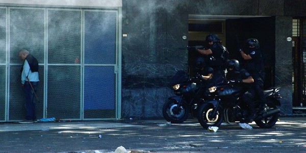 Tras ese incidente armado, las motocicletas policiales salieron en una cacería indiscriminada. Entre los heridos figuran más de seis periodistas. Un jubilado fue embestido por una camioneta policial, un policía embistió con su motocicleta a una persona que está gravemente herida. Dos jóvenes fueron llevados al hospital por disparos de balas de goma en el rostro y lamentablemente cada uno perdió un ojo. Los policías disparaban a ambos lados de las calles a quien estuviera caminando.