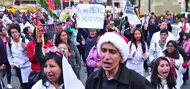 Pese a las fiestas de fin de año, las medidas de presión de los médicos continuaron. El domingo, horas antes de Nochebuena, cientos de galenos y ciudadanos protestaron en las principales calles de La Paz. Ayer, en Navidad, otra marcha de mandiles blancos tomó las calles.