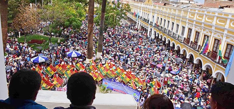 En Cochabamba, una masiva concentración de vecinos de los distritos 8 y 15 colapsó el centro de la ciudad y llenó la plaza principal.