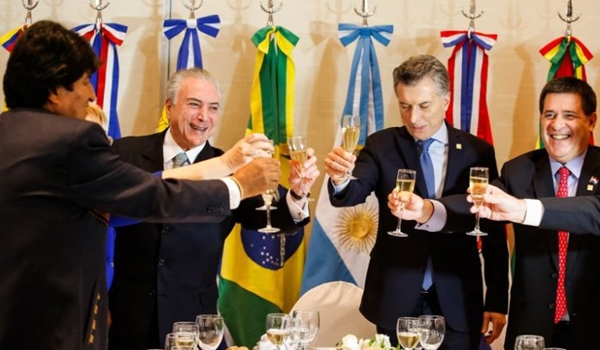Pero más allá de esa mediterraneidad que la marca en Sudamérica al igual que Paraguay, cuenta con cuatro de sus cinco vecinos gobernados por empresarios neoliberales. El gigante Brasil sufre a manos del golpista Michel Temer, mientras que Argentina, Perú y Paraguay están gobernados por empresarios (Mauricio Macri, Pedro Pablo Kuczinsky y Ricardo Cartes) caracterizados por expoliar las arcas del Estado en beneficio de una elite que integra, junto a los medios hegemónicos de comunicación, el poder fáctico. Y pronto se les sumará Chile, con Sebastián Pïñera.