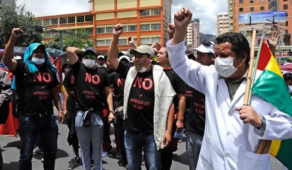 El 23 de noviembre, los profesionales de la salud iniciaron un paro de actividades en el sector público y de la seguridad social en contra del artículo 205 que legisla sobre la mala práctica profesional. Durante todo este tiempo protagonizaron marchas y bloqueos en distintas ciudades capitales, junto a piquetes de huelga de hambre.