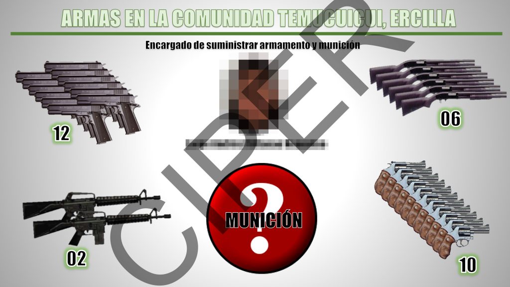 El 4 de agosto Jorge Huenchullán, uno de los detenidos en la “Operación Huracán” y líder de la Comunidad Autónoma de Temucuicui, le habría enviado a Héctor Llaitul un archivo Excel con un listado de armamento: “seis escopetas, 10 revólveres, 12 pistolas y dos fusiles”. Llaitul habría respondido: “de Argentina me van a llegar, el 15”.