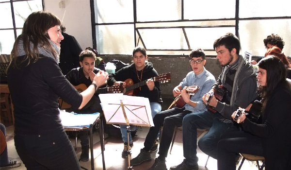 María Noel – La enseñanza media en Uruguay -donde me desempeño hace 20 años- tiene una larga tradición coral. Cada liceo (instituto secundario) tiene un coro de estudiantes, pero no ocurría lo mismo con la actividad instrumental y, realmente, muchos jóvenes se acercaban a los coros liceales con la intención de participar acompañando con algún instrumento musical. Es así que al concluir mi formación en la UNDAV tuve una gran cantidad de ideas, herramientas y recursos para elaborar proyectos y muchas ganas de compartirlas y aplicarlas en mi ámbito de actividad docente.